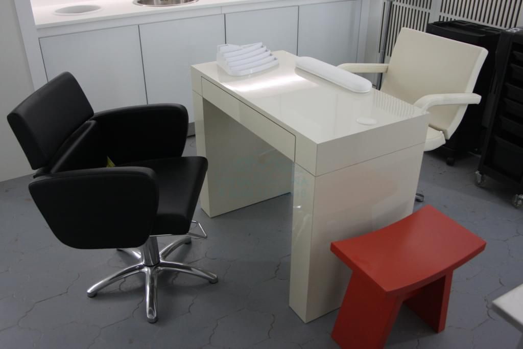 столешница покрыта износостойким пластиком (выдерживает воздействие лаком и жидкости для снятия лака)