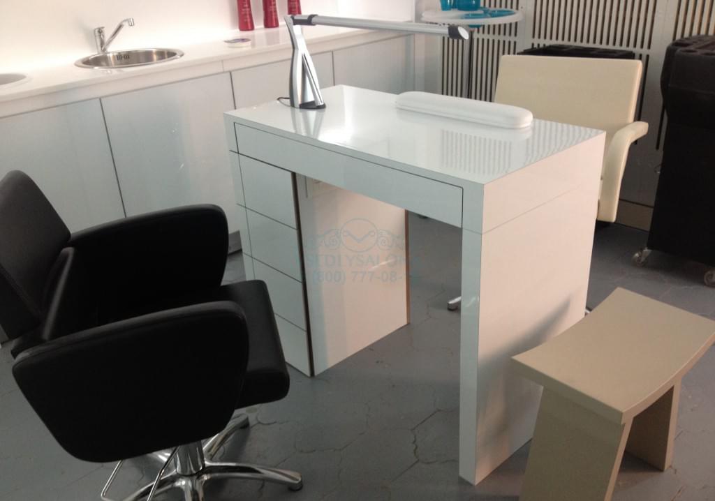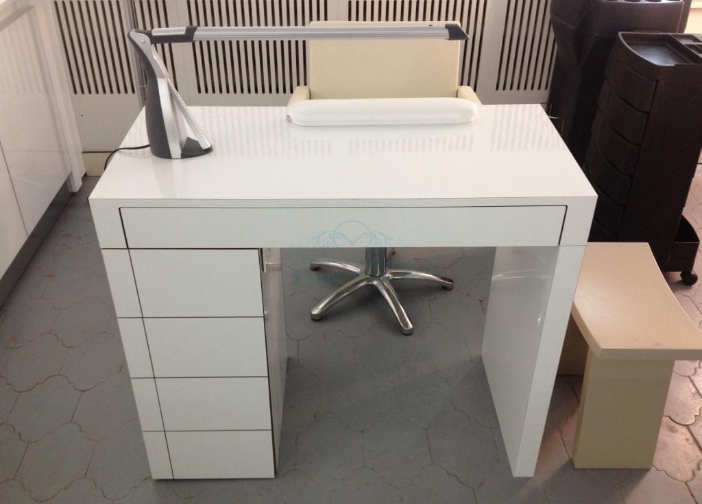 столешница покрыта износостойким пластиком (выдерживает воздействие лаком и жидкости для снятия лака)