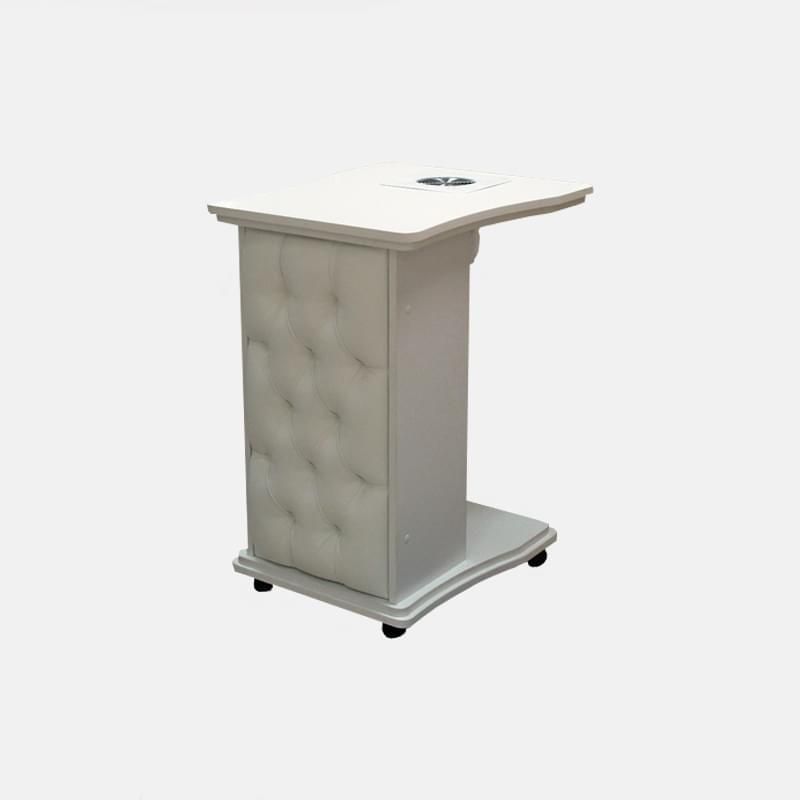 Модель может быть оснащена вытяжкой, цвета можно подобрать индивидуально. Прекрасное решение для проведения экспресс-маникюра. Тумба несмотря на компактные размеры достаточно вместительная. Здесь можно расположить все, что необходимо для экспресс-маникюра.