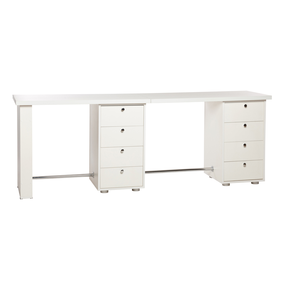 Маникюрный столик «Сабина» - это удобное рабочее место для двух мастеров маникюра. Столешница широкая, что позволяет комфортно здесь работать и размещать все необходимое – подставки для лаков, лампы и прочее. Оба рабочих места идентичны.