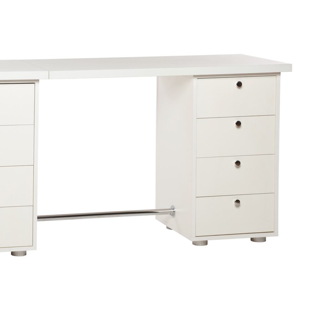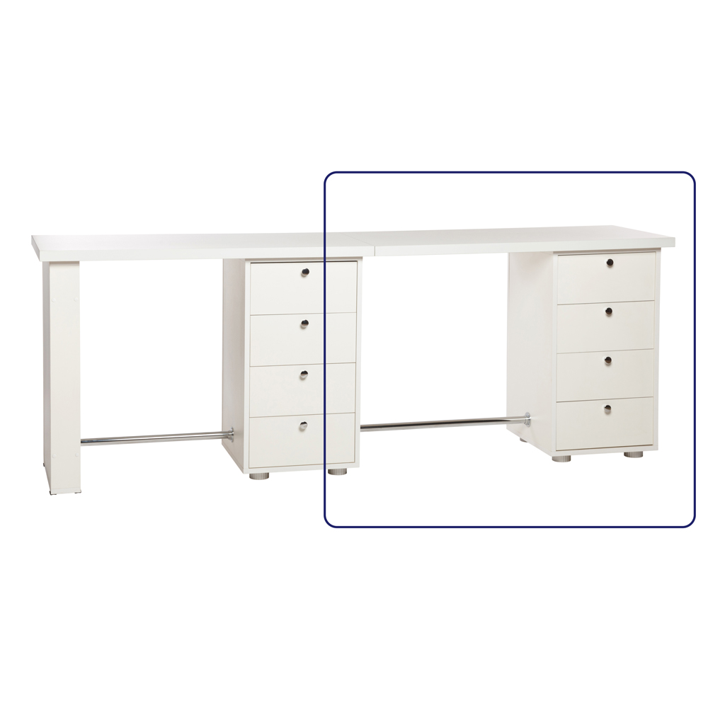 Стол маникюрный "Глория" приставной используется только в многоместном варианте в комплекте с основным столом "Глория". Данный стол является дополнительным при использовании его в многоместном варианте, в столешнице произведена присадка для шкантов и штоков эксцентриков для стыковки с основным столом