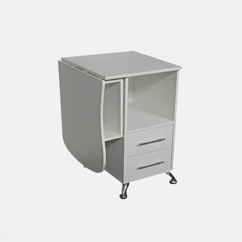 Представляем вашему вниманию компактный и практичный в эксплуатации маникюрный стол Drag. Его главные преимущества – небольшие габариты, легкость и привлекательный современный дизайн. Столешница небольшая по площади, но удобная в работе. В тумбе за дверкой с каретной стяжкой – несколько полочек для инструментов и различных средств.