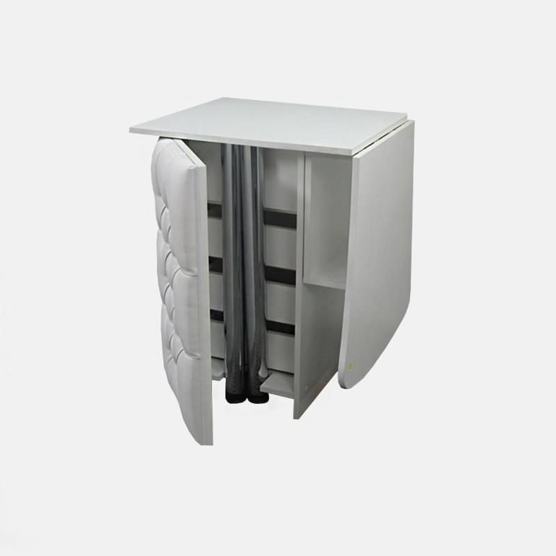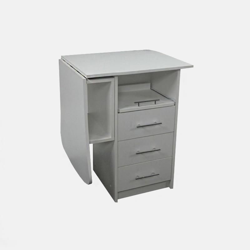 Складной маникюрный стол с тумбой "Ever" в сложенном виде занимает вдвое меньше пространства. Это экономит площадь и позволяет с комфортом работать даже в маленьких кабинетах. Есть вместительная тумба и полка под столешницей.