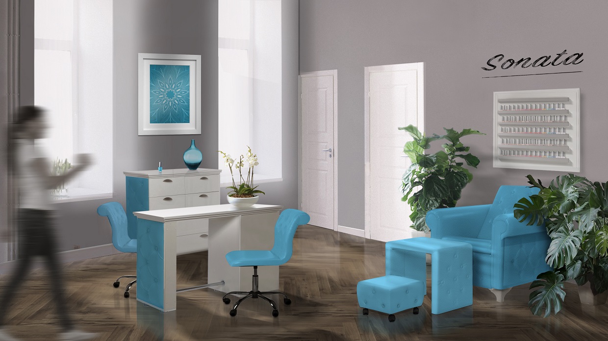Администраторская стойка «Соната» сразу же привлекает к себе внимание. Каретная стяжка с мягкой текстурой выглядит современно и стильно, придает вашему заведению статуса и изысканности. Дополнительный эффект достигается за счет использования элегантных резных ножек, выступающих в роли некоего акцентного элемента. Со стороны администратора практически всю площадь занимают полочки и дверки, где можно разместить все для работы и личные вещи, если надобность в этом есть. Цвета отделки можно выбрать практически любые, что позволяет реализовать самые креативные идеи и придать вашей парикмахерской или салону красоты больше индивидуальности.