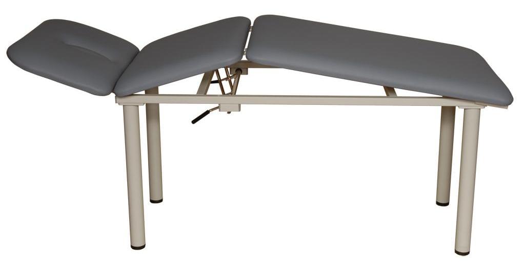 3-секционный массажный стол с фиксированной высотой и пневматической регулировкой головной секции. Cтандартная модель может быть расширена добавлением отверстия для лица в головную секцию.