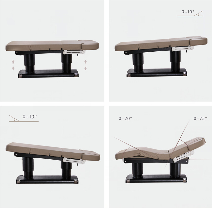 Массажная кушетка "HM-003" - с 4 двигателями (высота,подставка для ног, спинка) обладает отличной прочностью, максимальный вес нагрузки составляет 200 кг. Светлая обивка изделия легко и быстро чистится, не теряя при этом внешнего вида от частых обработок и дезинфекций. Доступна дополнительная опция памяти.