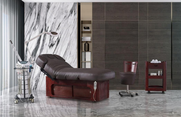 Массажная кушетка "HM-008" - 4 двигателя (высота,подставка для ног,спинка)/подлокотник ручной регулировки