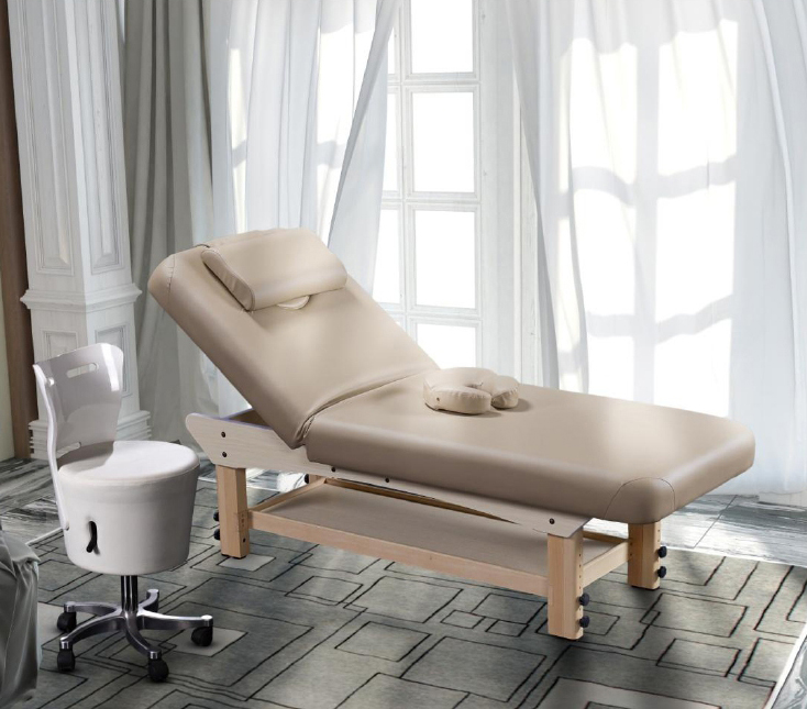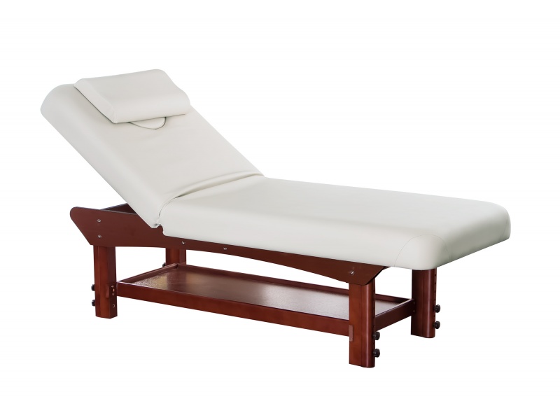 Массажная кушетка "HM-014" - 2-секционная стационарная деревянная кушетка. Платформа для хранения вещей под кроватью. Спинка регулируется вручную.