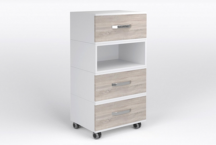 Универсальная тумба "Bingo 3+1" - состоит из выдвижных ящиков, рабочей поверхности и открытой полочки. Корпус модели выполнен из прочного и влагостойкого ЛДСП. Тумбу можно увеличить, купив дополнительные секции.