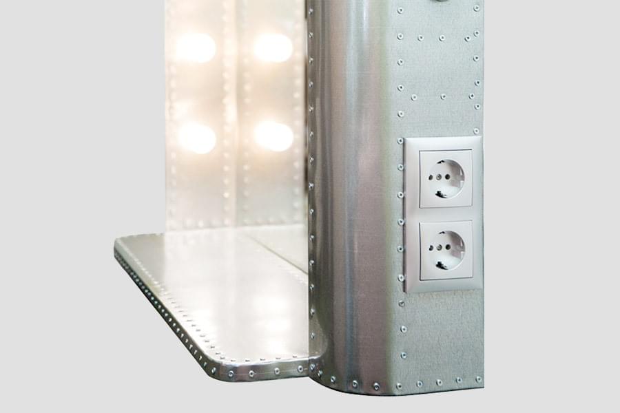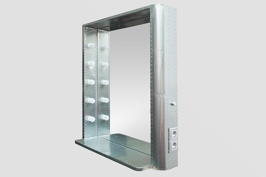 Каркас мужского барбер зеркала Valter выполнен из массива дерева и облицован листовой оцинкованной сталью. В зеркале установлены 10 матовых ламп с цоколем Е14 (входят в комплект поставки). Яркость подсветки регулируется диммером: это позволяет установить комфортную интенсивность освещения на ваше усмотрение. Зеркало оснащено двумя розетками для подключения электрооборудования.