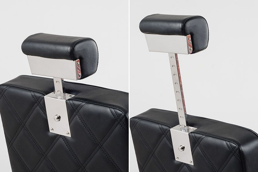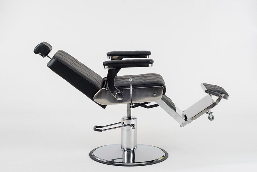 Модель оснащена специальным механизмом, позволяющим наклонить спинку кресла на 60 градусов, а также имеет подставку для ног из хромированной стали, оборудованную роликовыми колесами.