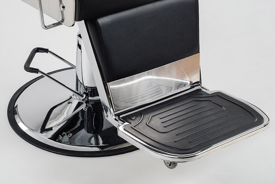 Подножка на колесах выполнена из хромированного металла с прорезиненной поверхностью.