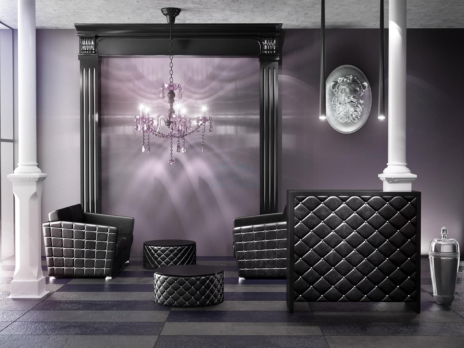 Администраторская стойка «Гламрок» выполнена в соответствующей стилистике – контрастные элементы, каретная стяжка с небольшим объемом, ярко выраженная геометрия и широкие возможности реализации индивидуального дизайна. Внешняя часть лишена мелких деталей, украшена стяжкой. Внутренняя – полноценное рабочее место для сотрудника салона.