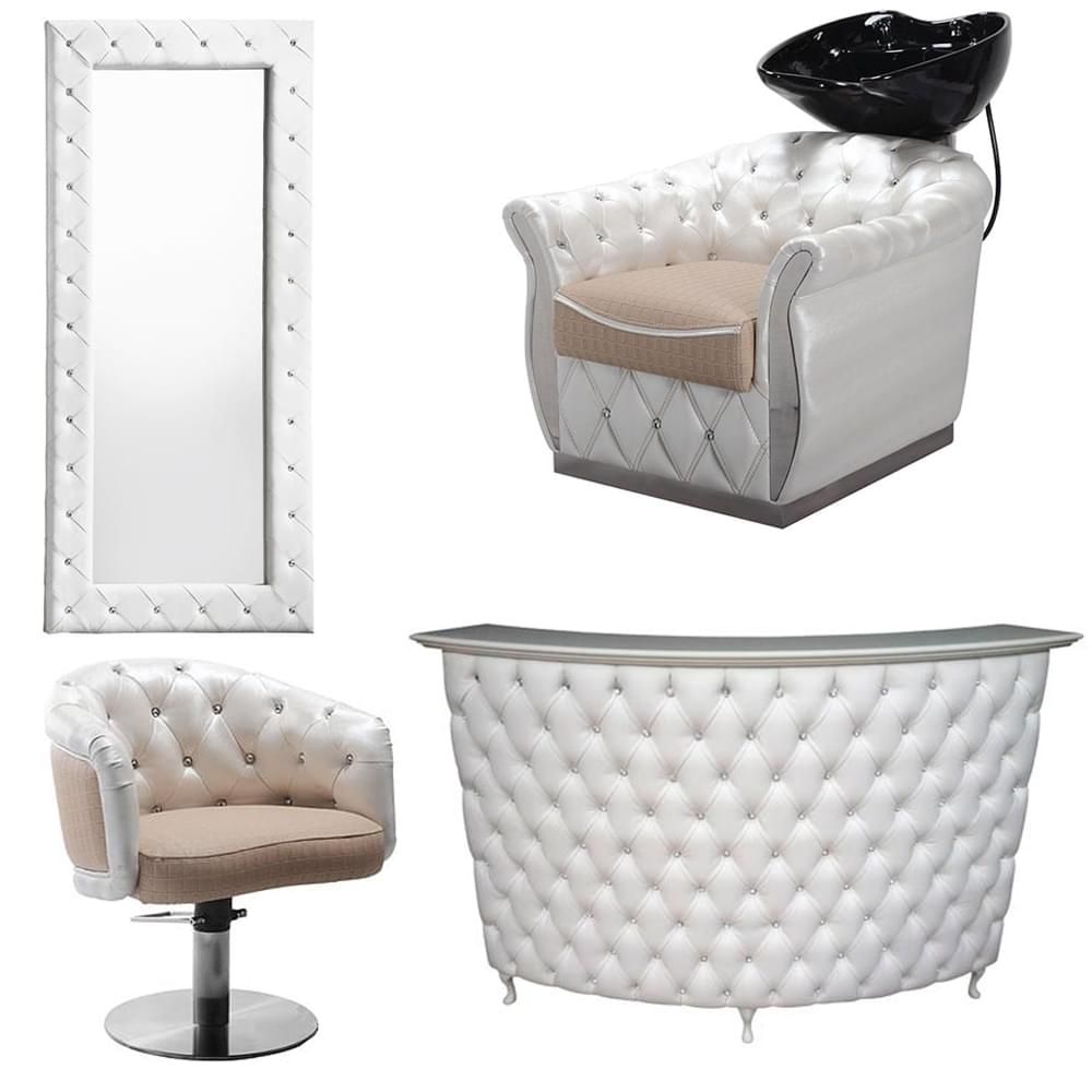 Парикмахерский комплект «Able» - красивый и стильный набор мебели, идеально подходящий для создания роскошной обстановки в салоне. В комплект входит четыре эргономичных и стильных предмета – полукруглая стойка администратора, парикмахерское кресло, вертикальное зеркало в раме и парикмахерская мойка.