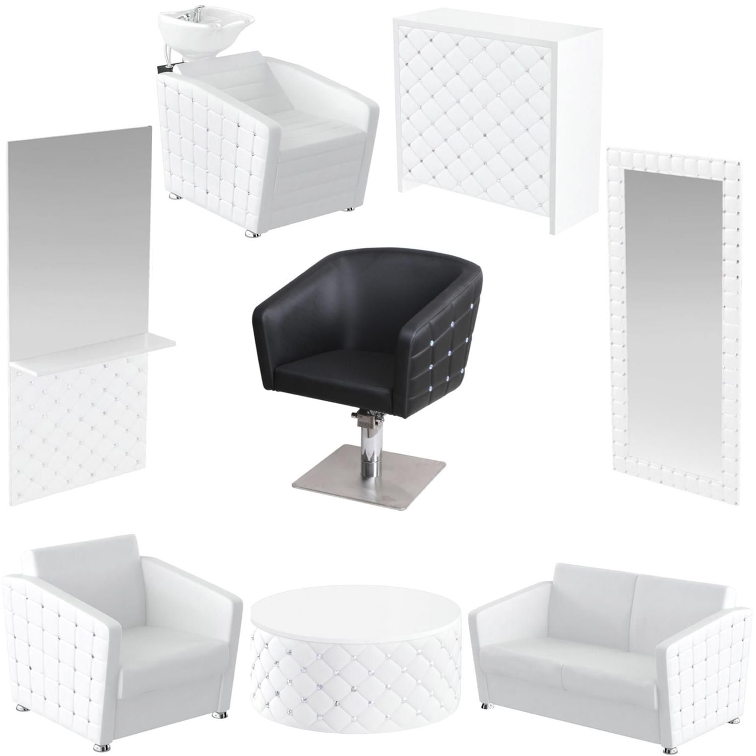 Парикмахерский комплект «Гламур» позволяет полноценно обустроить не только рабочий зал, но и зону ожидания. В комплект входит парикмахерское кресло и мойка с креслом, одностороннее зеркало (возможно два варианта дизайнерского оформления), стойка администратора, журнальный столик, кресло и диван для холла.