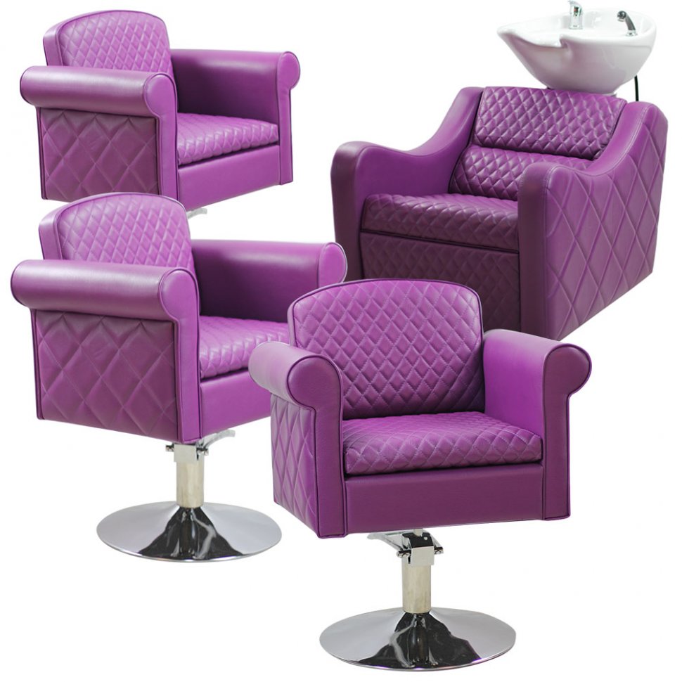 Парикмахерский комплект «Пабло» состоит из трех парикмахерских кресел и одной мойки. Среди других вариантов он отличается ярким дизайном. Производитель использует искусственную кожу цвета фуксии с декоративной стяжкой. Кресла имеют обтекаемые формы, высокие подлокотники и спинка обеспечивают максимальный комфорт во время длительных процедур. Кресла регулируются по высоте при помощи подъемника.