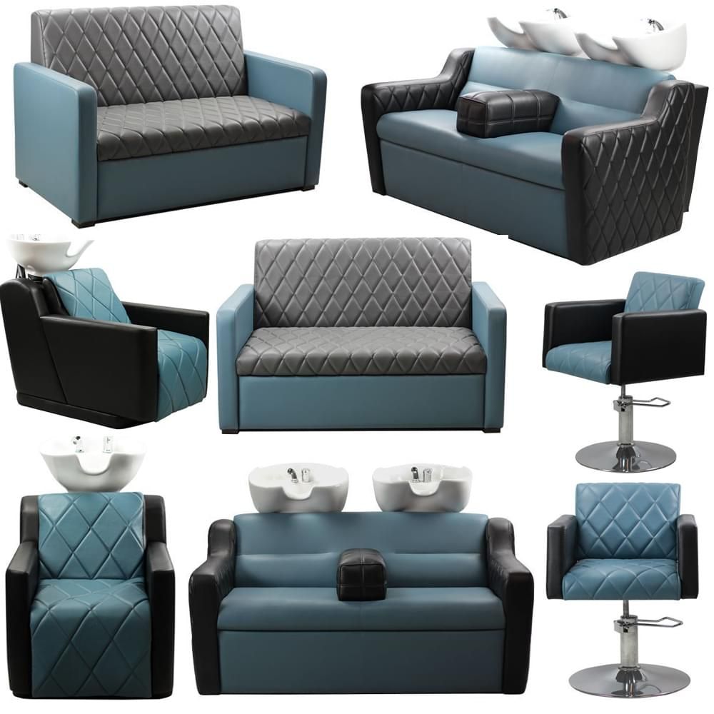 Парикмахерский комплект «Rossi» включает в себя восемь предметов: два дивана для холла, две двойных и две одинарных парикмахерских мойки и два парикмахерских кресла. В дизайне используется три основных цвета: глубокий голубой, светло-серый и черный. Обивка изготовлена из искусственной кожей, для придания фактуры применяется декоративная стяжка.