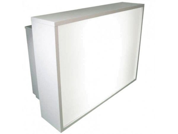 Стойка администратора изготовлена из ламинированного ДСП белого цвета, фасадная часть выполнена из светорассеивающего матового стекла. Стоимость парикмахерского комплекта уточняйте у менеджера.