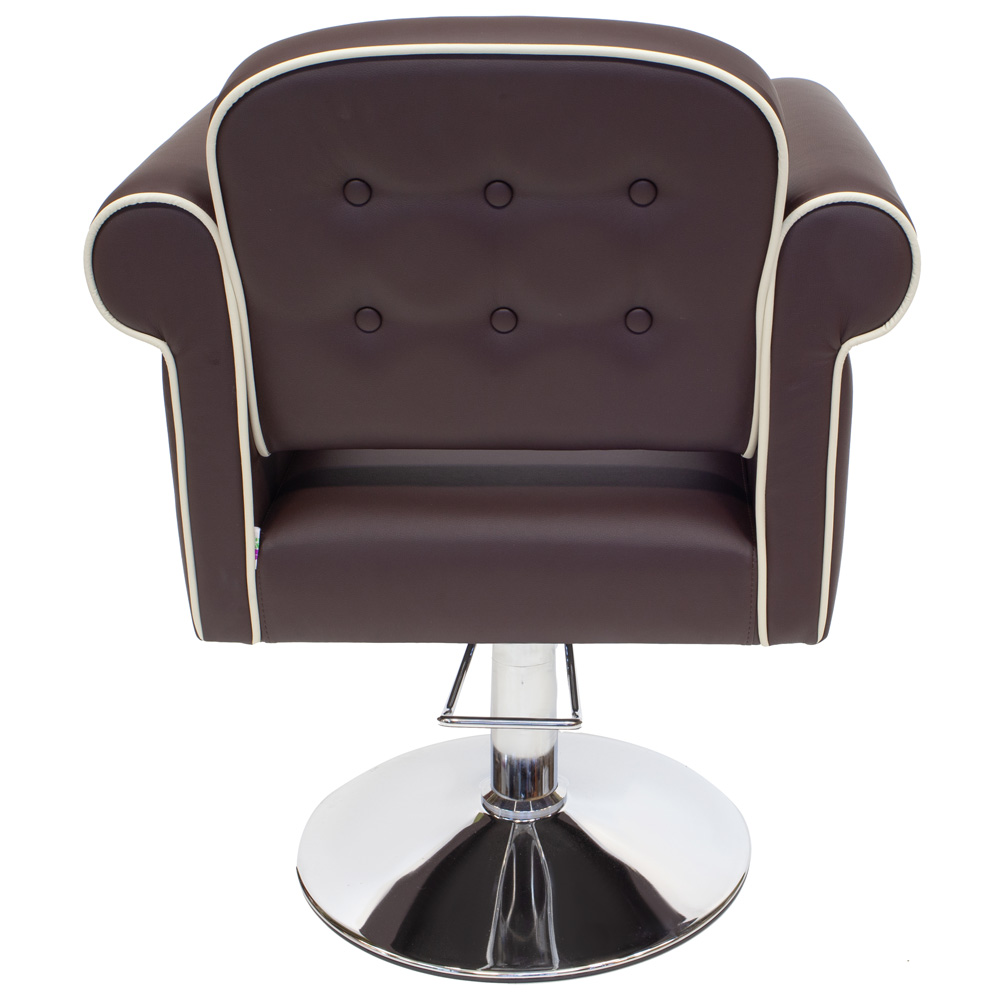 Изящество и удобство сочетает в себе парикмахерское кресло Venetto, которое придаст элегантности любому помещению. Создана модель из хорошего и прочного кожзама бежевого оттенка, а для декора использовалась каретная стяжка. Чтобы клиенты чувствовали себя комфортно, изготовитель предусмотрел широкое сидение и удобные подлокотники. Поэтому все процедуры будут протекать быстро и с удовольствием.