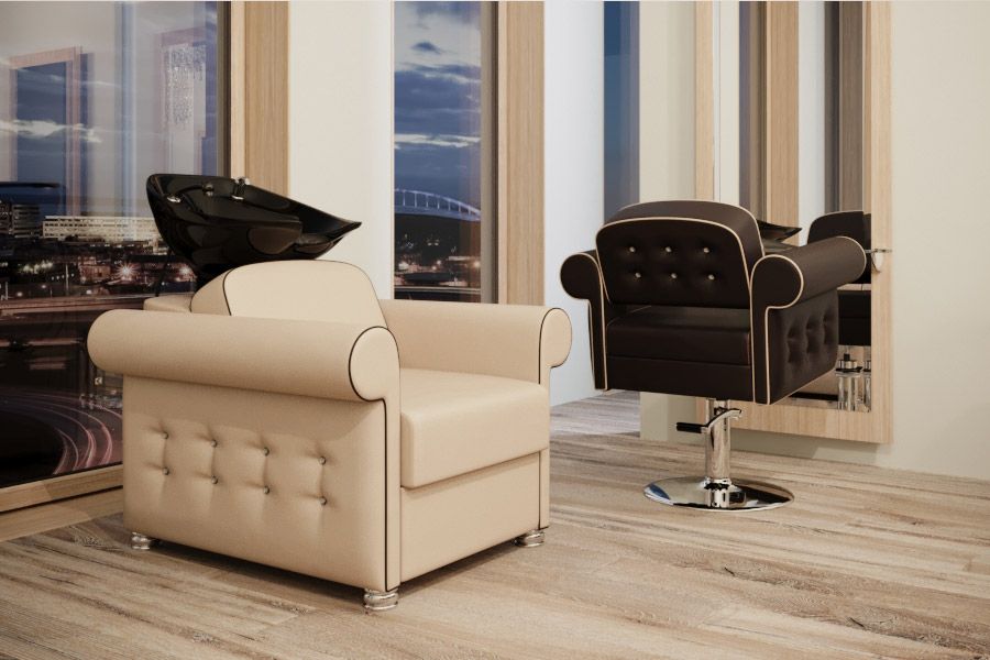 • высокая спинка изделия, что снимает нагрузку с позвоночника и позволяет клиенту расслабиться;
