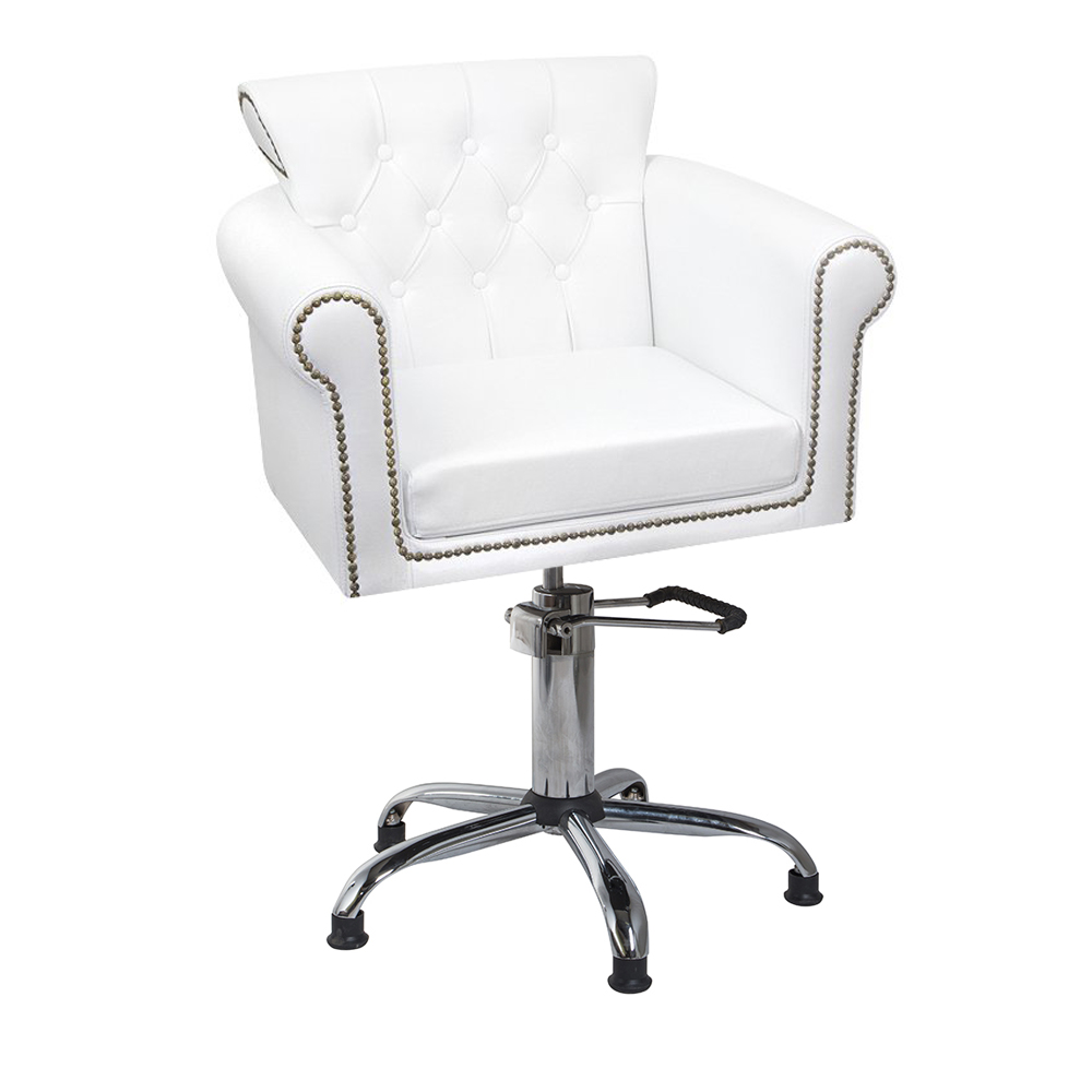 Парикмахерское кресло выполнено из высококачественного поролона, каркас обтянут искусственной кожей, мягкие кожаные подлокотники. Комплектуется стационаром, гидроподъемником с основанием на выбор: пятилучье, диск, квадрат. Обрамление мебельными гвоздями придает неповторимый шарм.