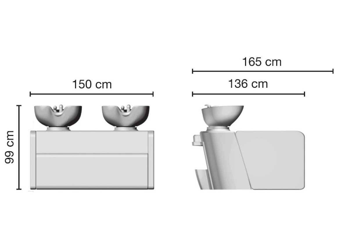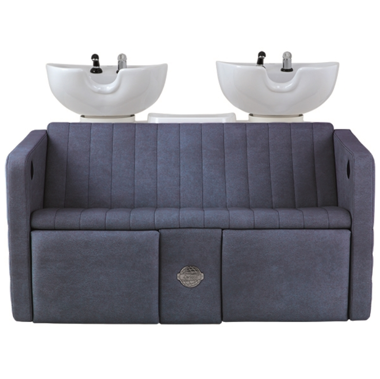 Парикмахерская мойка "DUETTO" с артикулом С-м60002516 - Подлокотники, сиденье и спинка из пенополиуретана с вставками из дерева и металла. Белая или черная конструкция из стекловолокна по запросу. Керамическая раковина с регулируемым шарниром.