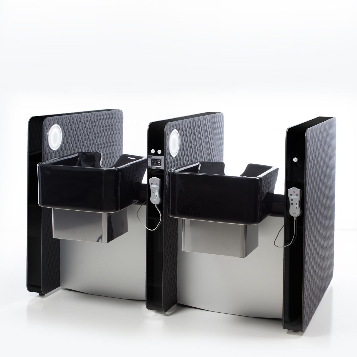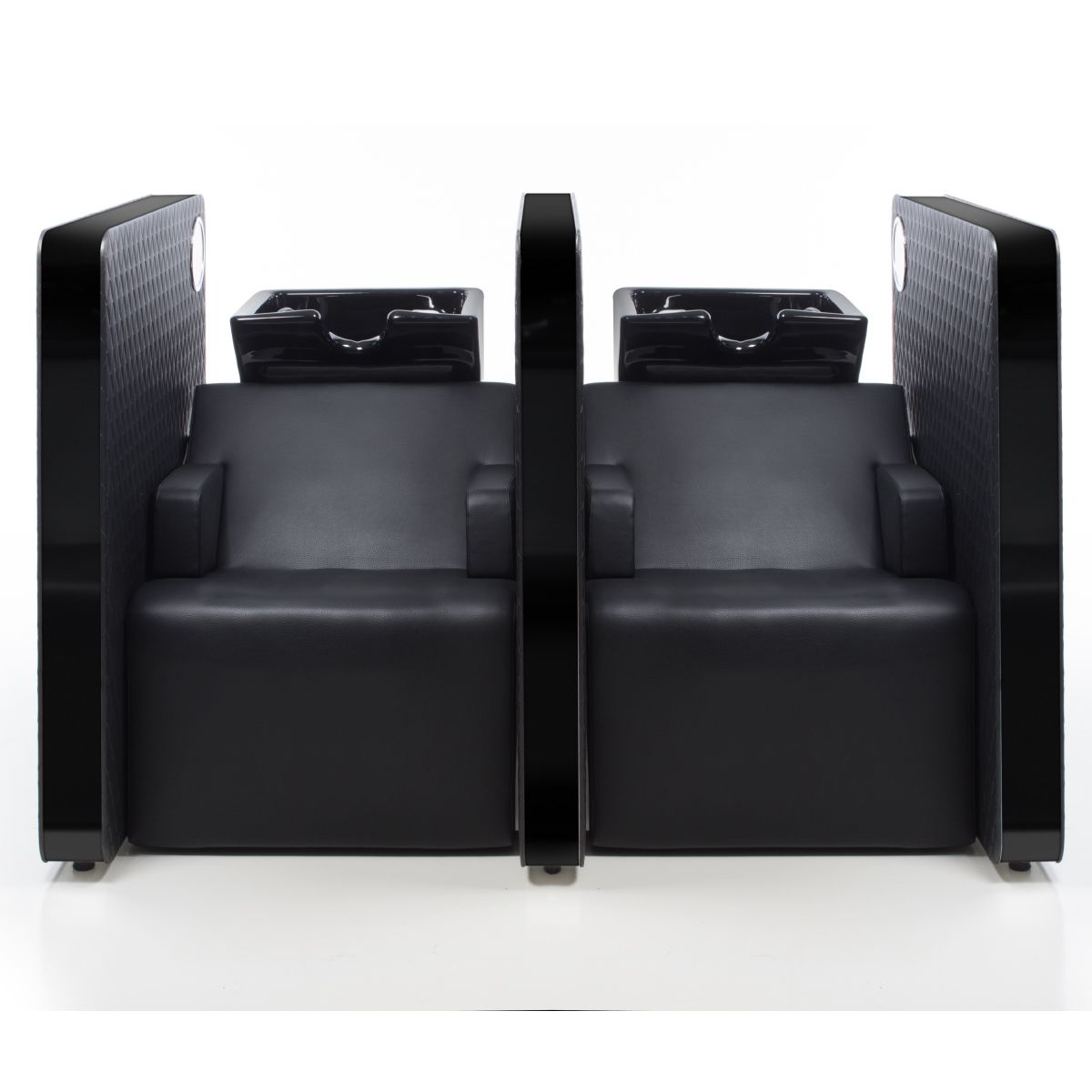 Парикмахерская мойка "VIP LOUNGE 2P" - двухместная с высоким уровнем комфорта и приватной зоной. Мойка оснащена мягкими и комфортными подлокотниками и системой воздушного массажа AIR-SHIATSU. Также мойка с артикулом G-м60002637 оснащена электрической регулировкой сидения, спинной части и опоры для ног. Движения синхронизированные, что позволяет клиенту принять положение "полулежа" обеспечивая максимальный комфорт. Мойка комплектуется глубокой керамической раковиной с регулировкой угла наклона и комплектом смесителя. Обивка - искусственная кожа высшего качества. Отделка боковин - исскуственная кожа коллекции "PRIVACY COLLECTION" или акрил. Окантовка боковин - сталь.
