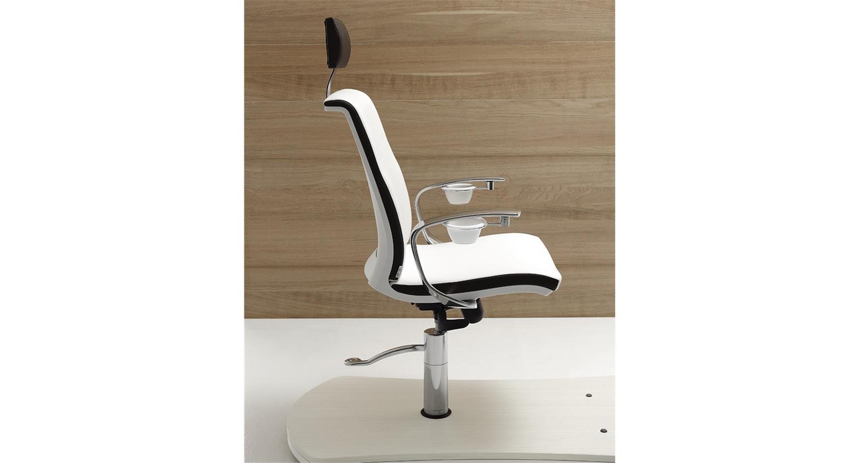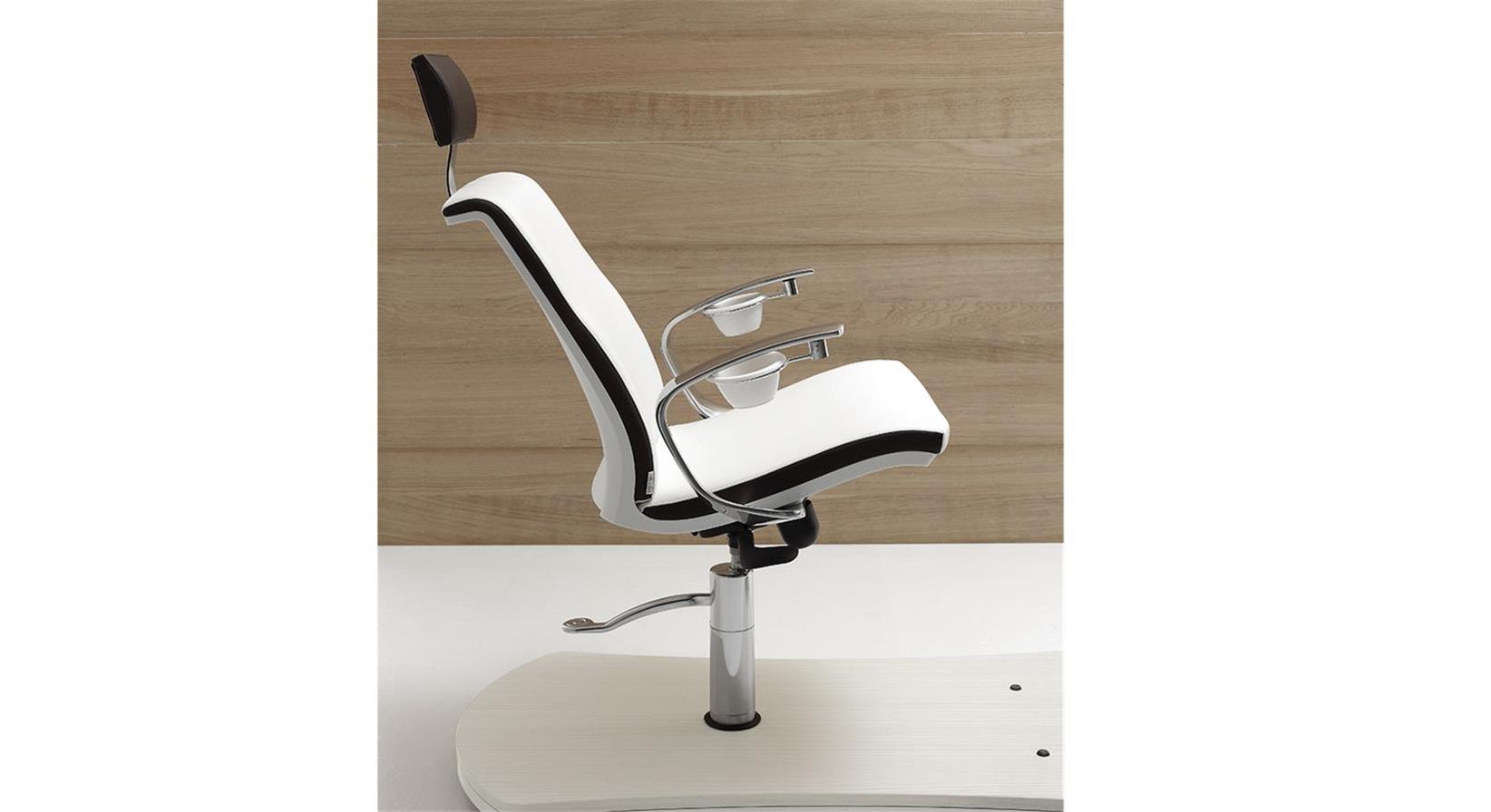 Педикюрная группа «Mini island evo» – это универсальная модель, в которой все продумано до мелочей. Кресло регулируется по высоте, а также поворачивается вокруг своей оси на 360 градусов. Производителем предусмотрена возможность регулировать угол наклона спинки и подголовника. Подлокотники оснащены ванночками для выполнения маникюра. При необходимости их можно опустить под подлокотники.