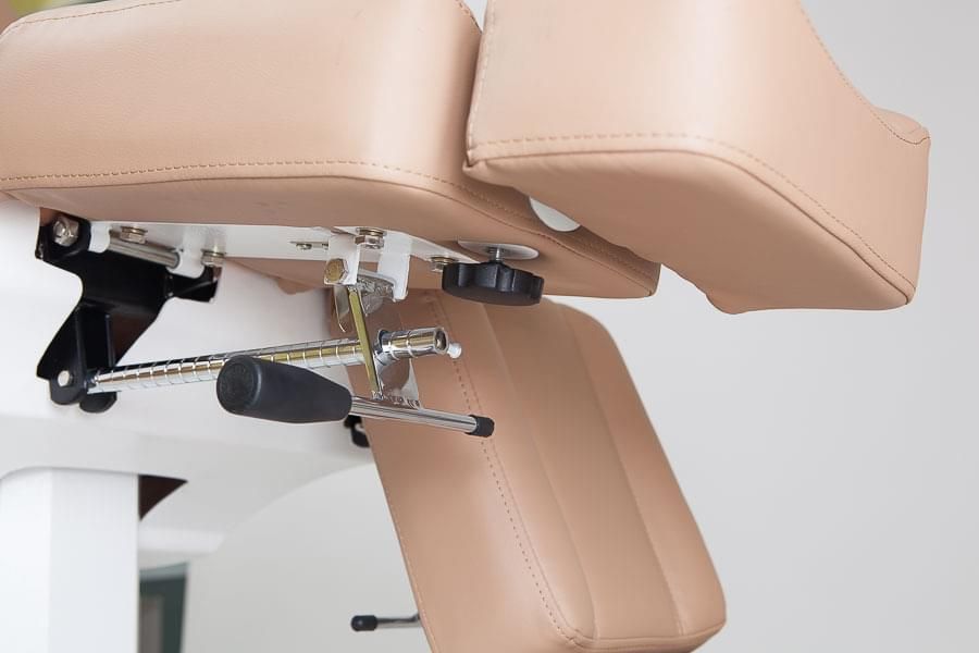 Чтобы посетитель насладился каждой процедурой, изготовитель создал широкую регулируемую спинку, комфортное сидение, подлокотники и опору для ступней, которая настраивается под себя. Также есть отверстие для лица, поэтому можно выполнять массаж и другие манипуляции с телом.