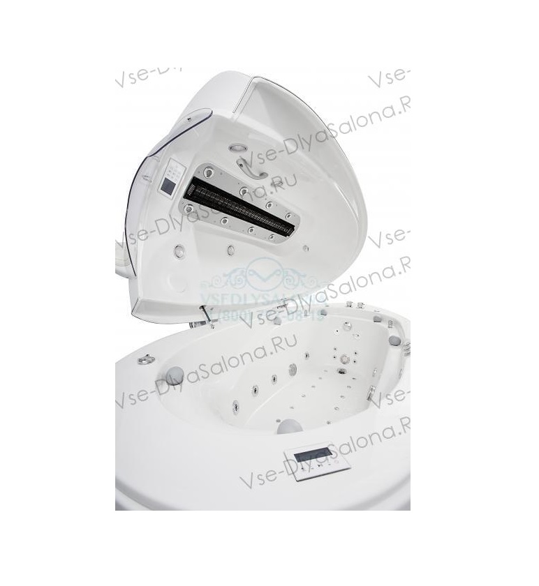 Аквакапсула "Aquamassage SPA" - включает в себя систему ароматерапии и звука, сенсорное управление, насос из нержавеющей стали мощностью в три лошадиные силы, водяные струи и механизм подачи, установленный заземлитель.