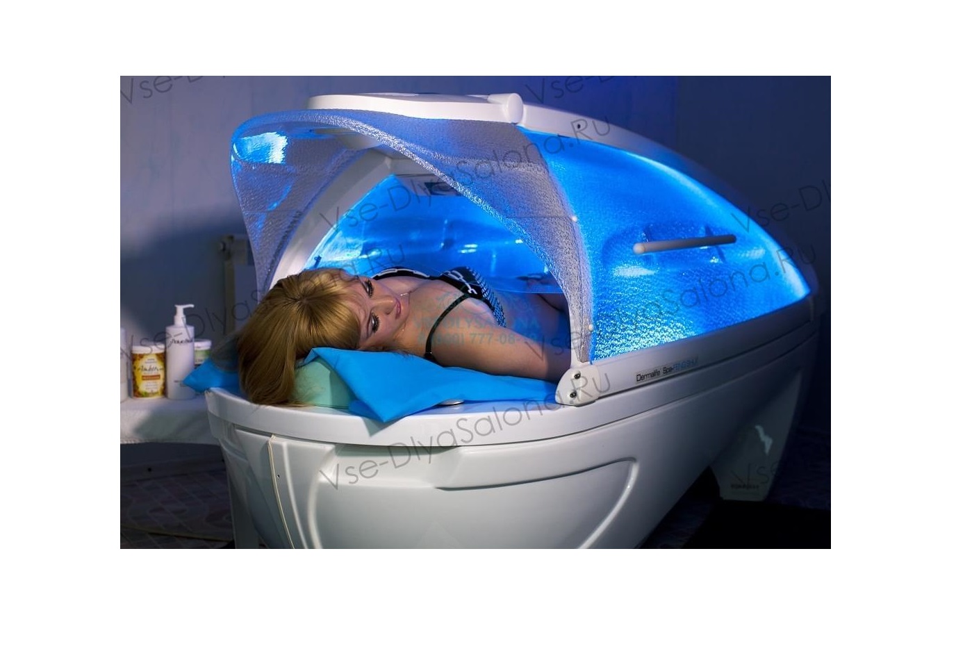 Аквакапсула "Aquamassage SPA" - включает в себя систему ароматерапии и звука, сенсорное управление, насос из нержавеющей стали мощностью в три лошадиные силы, водяные струи и механизм подачи, установленный заземлитель.
