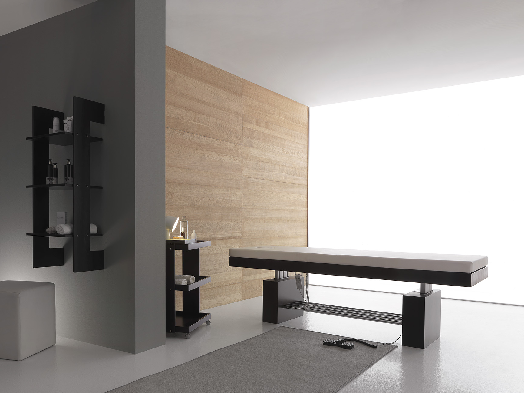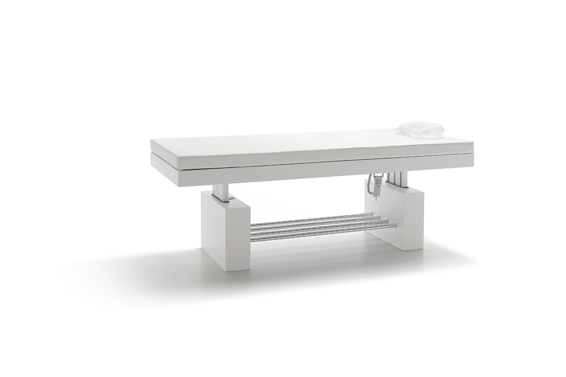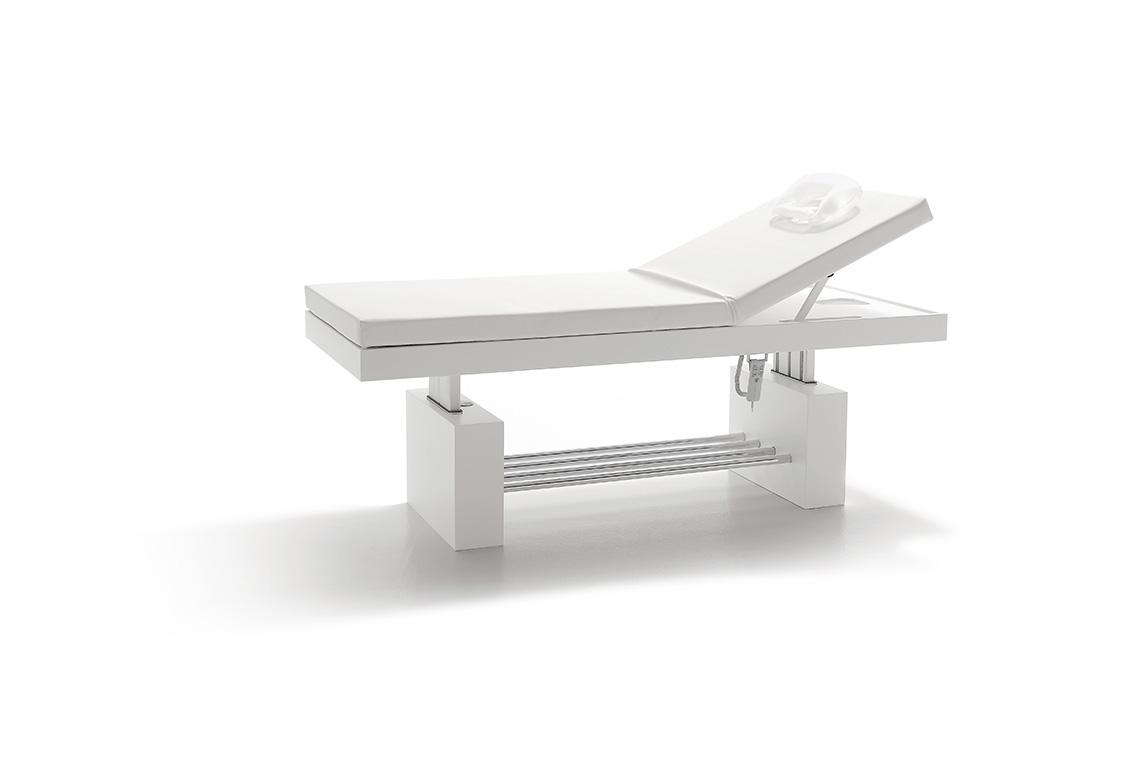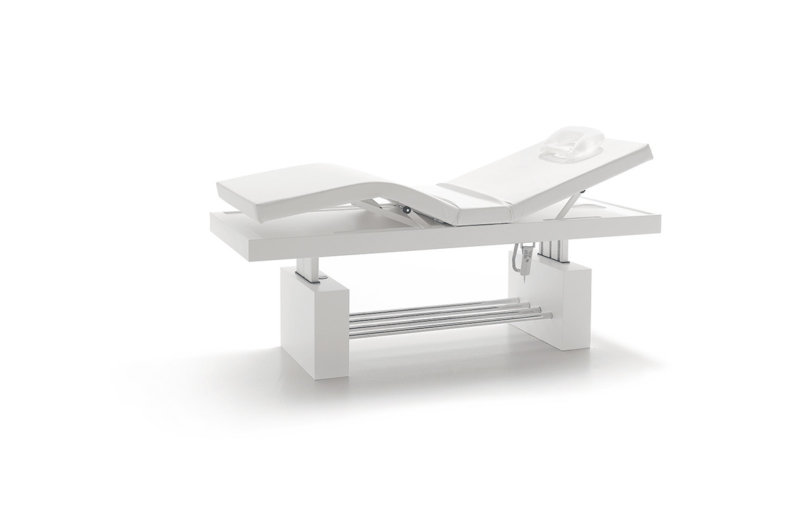 Возможно исполнение в двух стилевых решениях – матовый белый и лакированный венге. Изделие оснащено дополнительным подголовником, обеспечивающим максимальный комфорт во время проведения процедур.