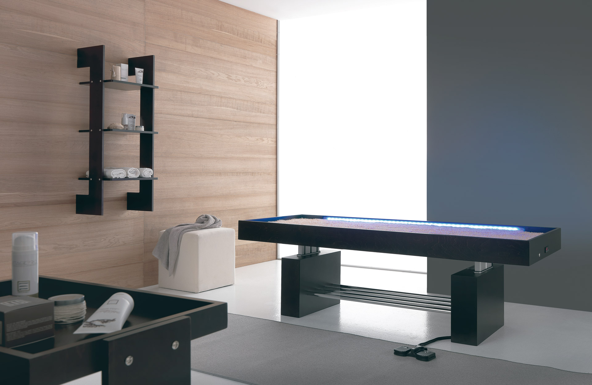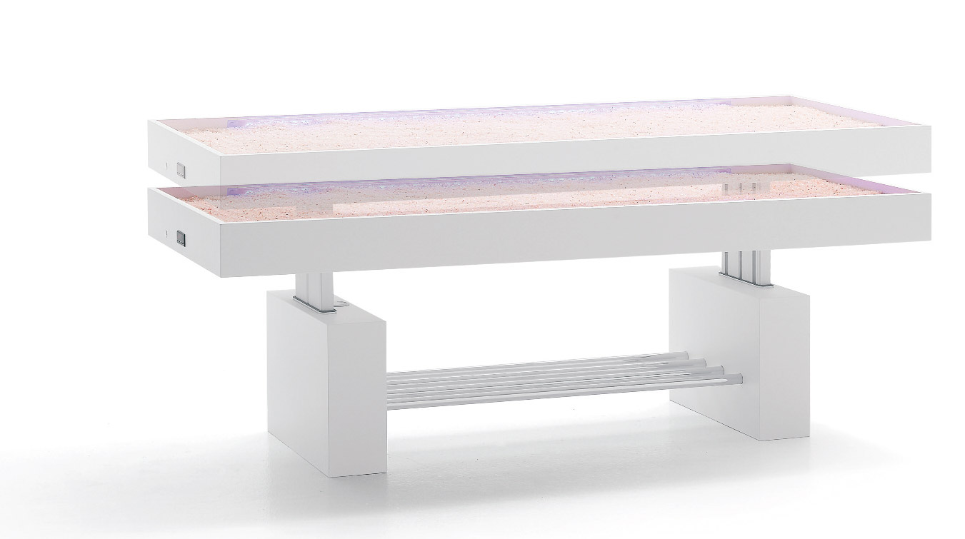 Модель «Andromeda Salt Mover» – многофункциональная СПА-кушетка. Ее особенность заключается в использовании уникальной гималайской кристаллической соли, которые позволяют клиенту максимально расслабиться, лежа на кушетке. Производителем предусмотрена возможность регулировки температуры нагрева соли в диапазоне 30-42 градусов.
