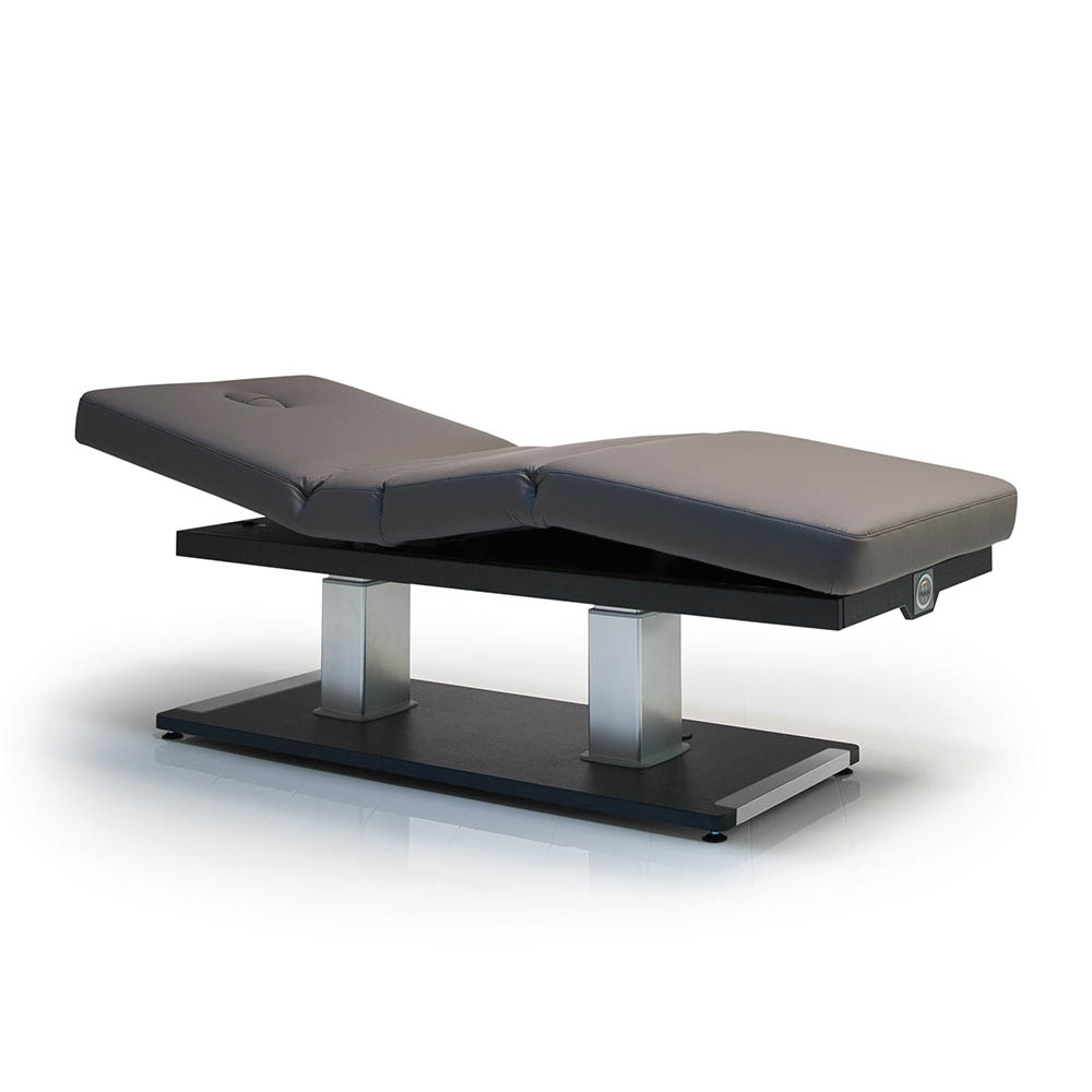 СПА кушетка "MLR Classic" - обладает большим спектром автоматических регулировок, таких как – регулируемая интенсивность подогрева, открываемое отверстие для лица, полностью изменяемая геометрия лежанки, регулировка высоты и наклона стола. Функции памяти позволяют запрограммировать положение кушетки, и в дальнейшем приводить ее в нужное положение нажатием одной кнопки. Вы можете выбрать варианты цвета вашей кушетки в соответсвии с интерьером. Обивка из эко-кожи или полиуретана со специальным покрытием допускает использовать кушетку для различных процедур, а применение мягкого наполнителя делает длительные процедуры комфортными.
