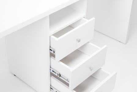 Многофункциональный маникюрный стол ДУО предназначен для работы двух мастеров одновременно. Стол укомплектован тумбой посередине, где мастера могут удобно хранить все необходимые инструменты. Тумба оснащена полкой и тремя выдвижными ящиками.