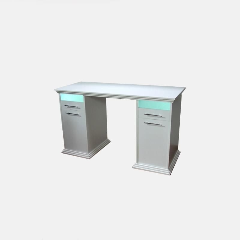 Маникюрный столик «Сабина» - это удобное рабочее место для двух мастеров маникюра. Столешница широкая, что позволяет комфортно здесь работать и размещать все необходимое – подставки для лаков, лампы и прочее. Оба рабочих места идентичны.