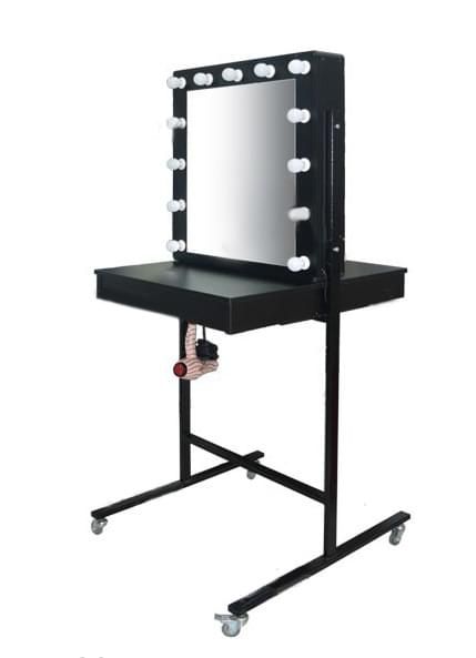 Небольшие колесики позволяют легко перемещать стол визажиста-парикмахера по помещению.
