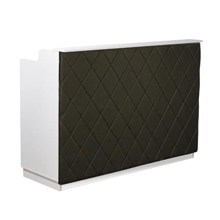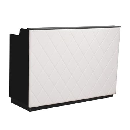 Администраторская стойка «Соната» сразу же привлекает к себе внимание. Каретная стяжка с мягкой текстурой выглядит современно и стильно, придает вашему заведению статуса и изысканности. Дополнительный эффект достигается за счет использования элегантных резных ножек, выступающих в роли некоего акцентного элемента. Со стороны администратора практически всю площадь занимают полочки и дверки, где можно разместить все для работы и личные вещи, если надобность в этом есть. Цвета отделки можно выбрать практически любые, что позволяет реализовать самые креативные идеи и придать вашей парикмахерской или салону красоты больше индивидуальности.