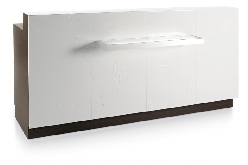 Стойка администратора. Лакированный фасад чёрного или белого цвета с узором. Цена указана на стойку администратора 150 см (фасад чёрный, ламинат чёрный U007).