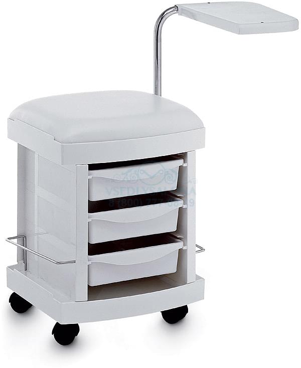 Стойка маникюрная MANI MASTER позволит мастерам проводить процедуру быстро, легко и с максимумом удобства, причем почти в любых условиях. Сделана стойка в белых оттенках, имеет три выдвижных ящика для хранения инструментов и регулируемую полку, которую можно настраивать под себя. Основной материал изготовления – пластик высокого качества, который легко очищается. А колесики внизу позволяют свободно перемещать стойку в нужную точку.