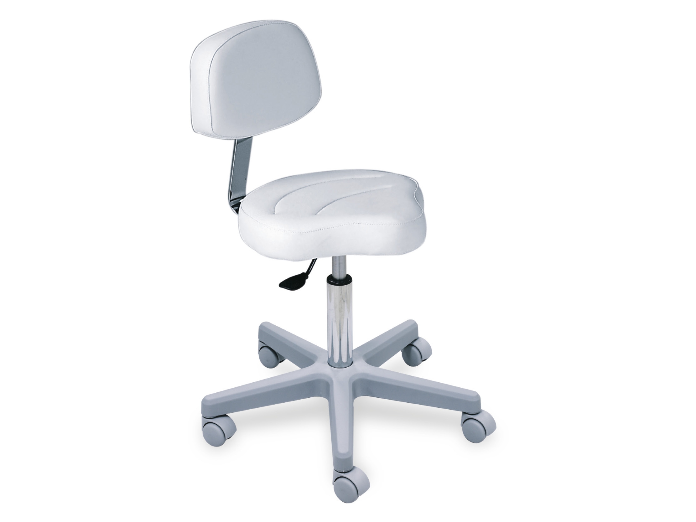 Оснащен регулируемой спинкой, пластиковым пятилучьем на колесах и газлифтом для регулировки высоты.