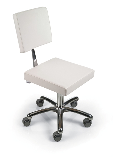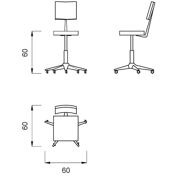 Стул оснащен алюминиевым основанием в форме пятилучья с колесами и газлифтом для регулировки высоты.