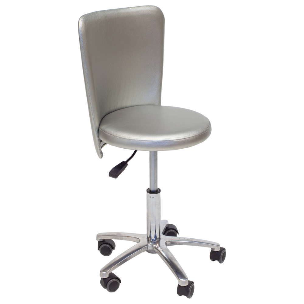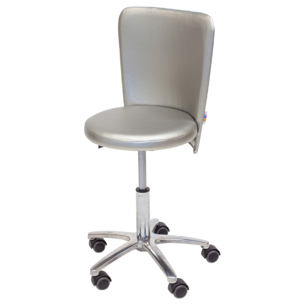 Данная модель стула мастера имеет пневматический подъемный механизм низкий, благодаря чему мастер сможет отрегулировать самостоятельно необходимую высоту. Стандартная комплектация стула предусматривает обивку эконом класса, однако по вашему желанию ее можно изменить. Опорой является пятилучье хром, которое также можно заменить.