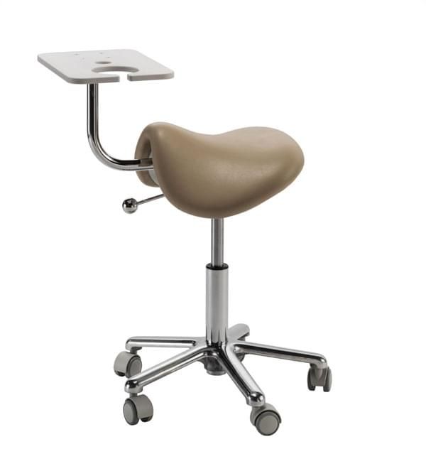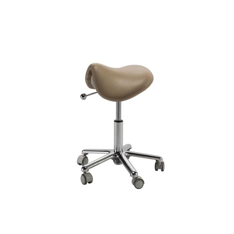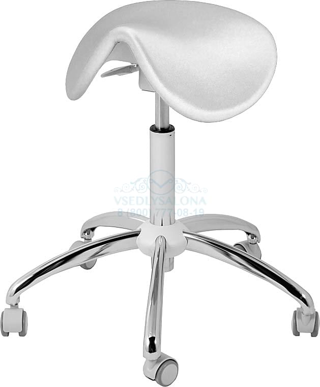 Стул мастера седло, хромированное пятилучье на колесах, возможен вариант с опорой для ног. Размер (ДхШхВ): 61х61х52/72 Дополнительная комплектация: DEE - стул на колесах с опорой для ног;