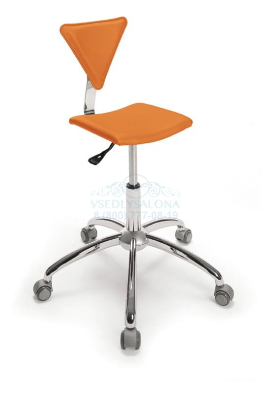 Стул для мастера. Материал - кожзам, хромированное пятилучье на колесиках. Размер: 60х60х105
