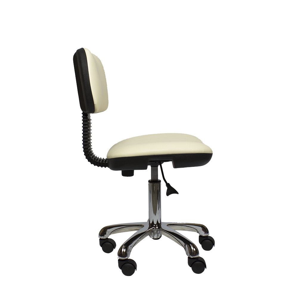 Мягкий стул мастера со спинкой и с пневматической регулировкой высоты на основании пятилучье, хром.