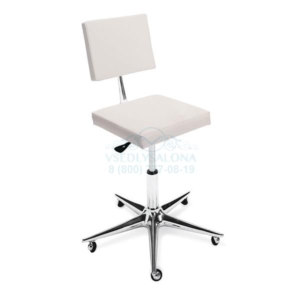 Табурет для мастера. Материал - кожзам, хромированное пятилучье на колесиках. Размер: 60х60х60