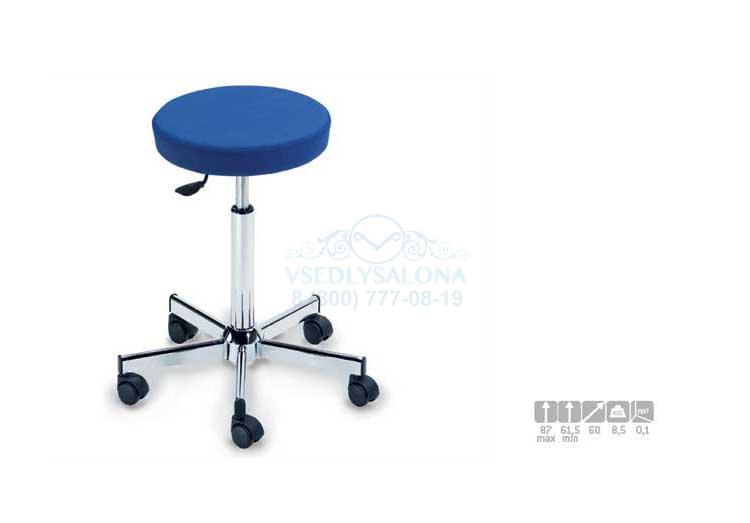 Стул для мастера без спинки, мягкие элементы стула обиты искусственной кожей, имеет круглую форму. Комплектуется металлическим пятилучьем на колесах. Пневматическая регулировка высоты. Размер (ДхШхВ):60х60х60-87