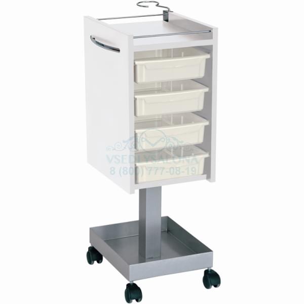 Тележка парикмахерская для инструментов с деревянными боковинами цвета венге, ящики выполнены из пластика, внизу металлическая полка на колесиках. Размер (ДхШхВ): 39х32х85
