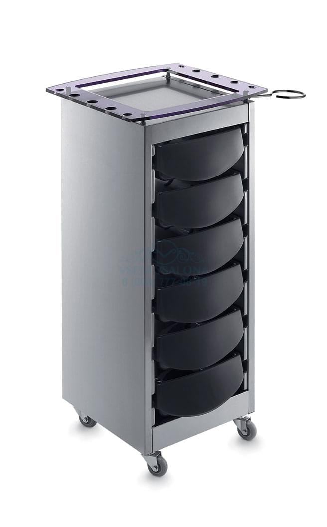 Тележка парикмахерская выполнена из металла, на колесиках, с выдвижными ящиками из пластика. Цвет: черный, серый.
